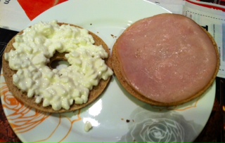 Having a hot lunch was a great change of pace, and it was delicious! I had a whole wheat Bagelthin on the side with some apple butter smeared on top.