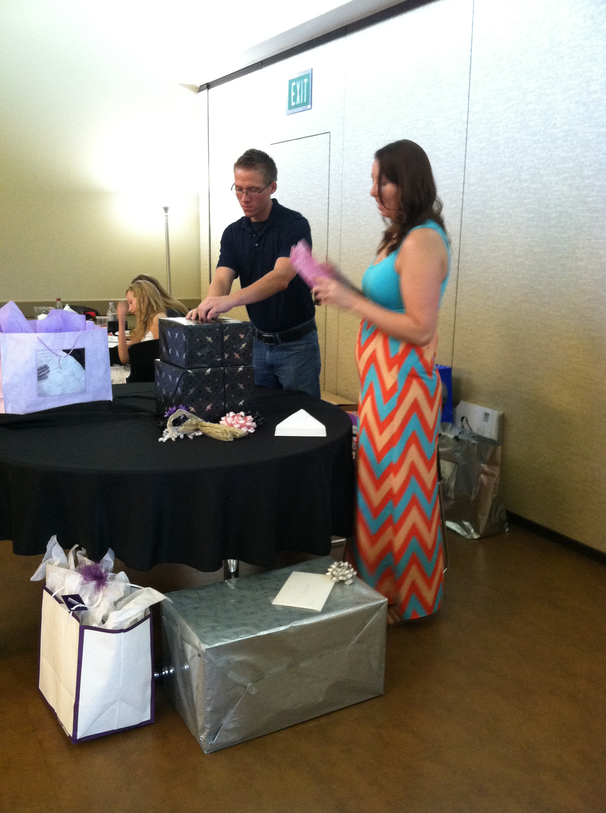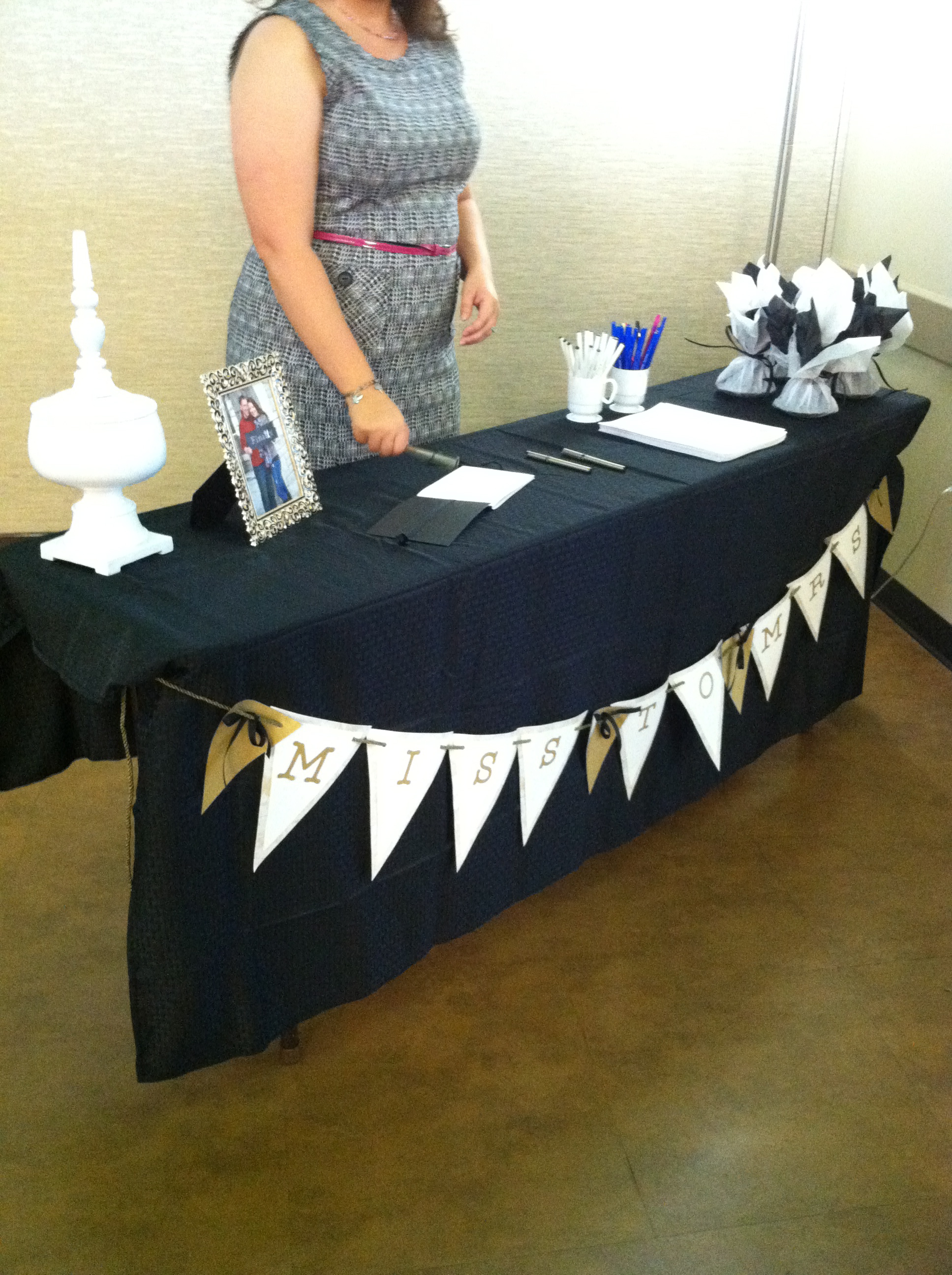The colors were black and gold, making our decorations fairly simple. My party favors were placed around the center pieces. I ended up with exactly enough to fill up each table. I was slightly proud! And then the food arrived…