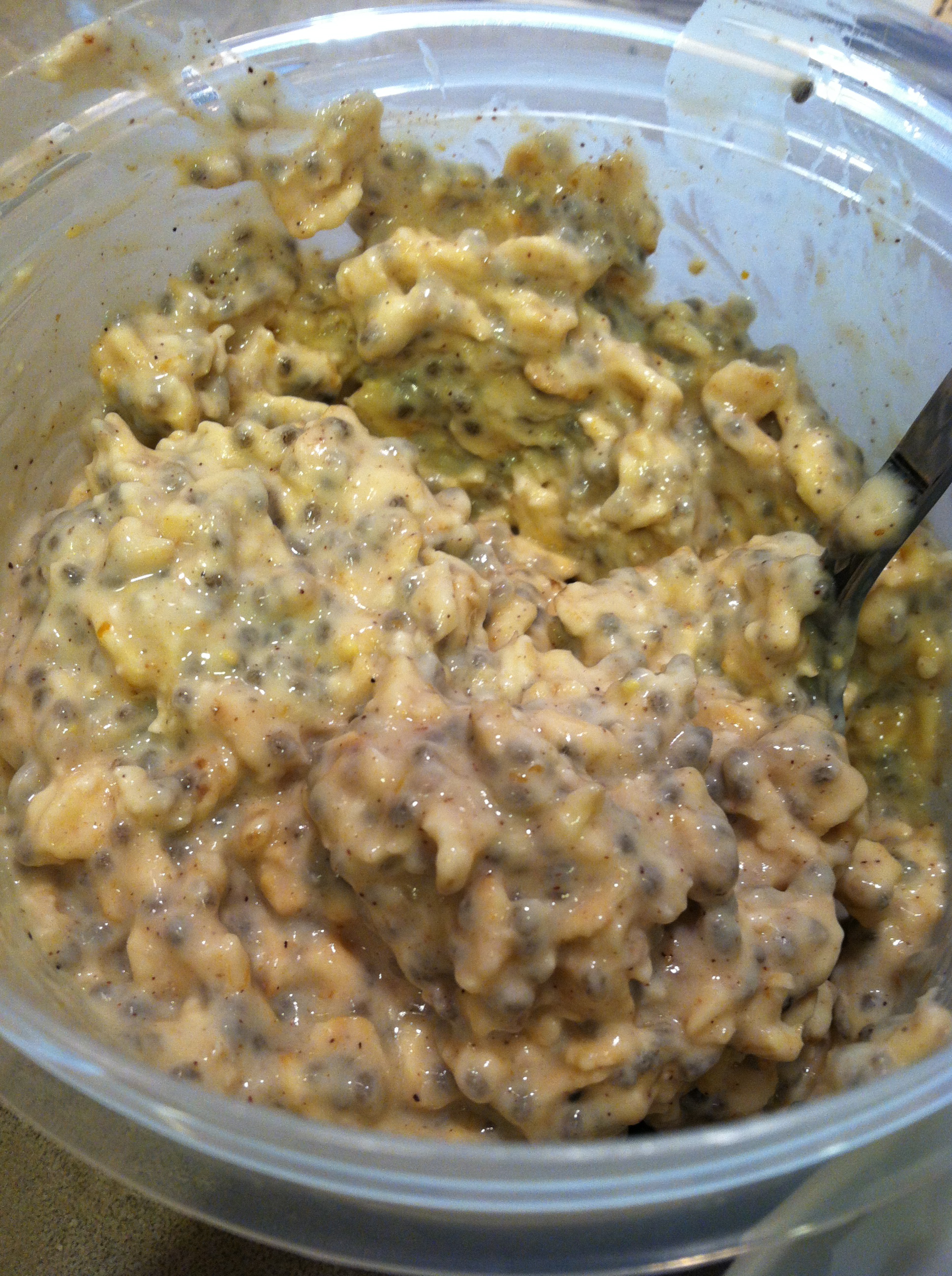 and I let that sit in a covered container in the fridge overnight for the oats to soak up all the milk and yogurty goodness.