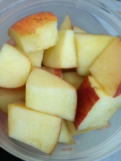 I also took a second to cut up a massive apple that has been sitting in my fridge for the past few weeks because it is too big to eat like a normal apple. I don’t think you could’ve bit into this sucker! It filled up this 2-cup container and took me about 20 minutes to polish off at my desk this afternoon.