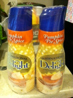 Pumpkin Pie Coffee Creamer! No less, in a convenient 2-pack! I usually go for the sugar free creamers, but this particular brand only has 20 more calories than the sugar-free. Plus it just looked amazing in the store. So I had to go for it! It doesn’t expire until January, so I can take my time with it. Yes, it’s not the healthiest. But it doesn’t include any real dairy products so it’s a win for this lactose-intolerant lady! I can’t wait for tomorrow morning!