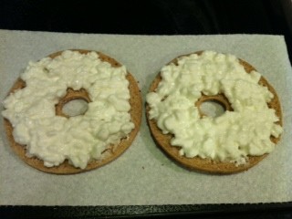 Lunch today was pretty light as I was wanting to get in a quick trip to Sam’s before it got any later in the day. Jazzercise kept me busy til around noon, and it made me hungry! So I knew I needed to eat a bite before I got around all the gigantic groceries or else my gigantic appetite would take over. I quickly topped a whole wheat Bagelthin with some cottage cheese and inhaled it before hopping in my car.