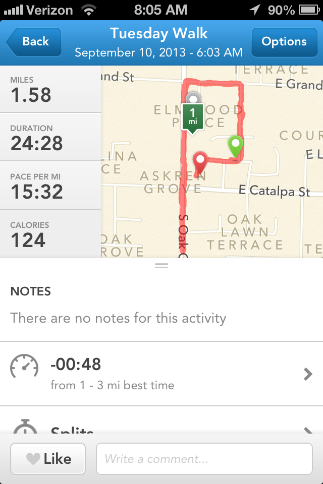 With my 5K happening this Saturday night, I definitely know I need to take it easy with my outdoor running until then. So this morning I awoke a little before my alarm and decided to take Mac out for a brisk walk to get my blood pumpin.