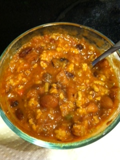 While I was finishing up my salad, I heated up a bowl of leftover turkey chili from the weekend. It ended up being even better the 2nd time around!