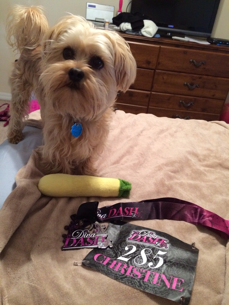 Yay for adding to my medal collection! And by collection, I mean the 1 other medal I had from the Glow Run 5K. Mac was pretty enthused with my new medal too.