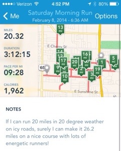 I started out SO slow. I was tired and pretty fatigued from running + Jazzercise yesterday. So for the first mile, I was just barely jogging and throwing a pity party for myself. But then I thought, “This is the perfect time to throw in some speed work.” Running at full throttle with extremely tired quads is the perfect marathon training. It’s a good way to figure out how you may be feeling in the second half/last 10K of the race. So I pushed through 3 sets of 1.5(ish) minute sprints up the worst hills on my route. I’m not crazy – I was just determined. I also wanted to hurry up and get home. 🙂 So the faster I ran, the raster I would be done!