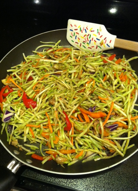 I then quickly showered before making a skillet of sauteed broccoli slaw.