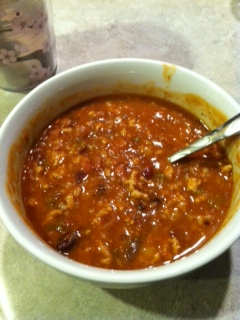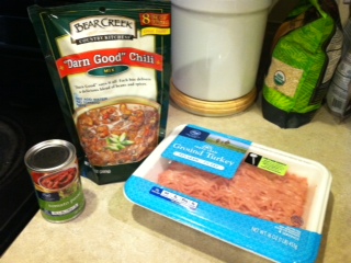 Dinner tonight looked difficult but was super easy thanks to a dry soup mix I bought today. I was cravin’ chili!