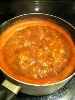 I had to let it simmer for 25 minutes. Then I mixed in the browned ground turkey and let it simmer together about 10 more minutes. It was amazing! And had the slightest hint of cinnamon. Oddly delicious!