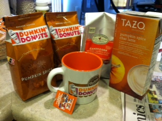 photo(47)I was so excited to find pumpkin-flavored everything in the grocery section! Plus, the cute Dunkin Donuts mug was FREE when I purchased 2 bags of their pumpkin coffee. Wins all around! Although, I think I’m most excited to try this coffee tomorrow morning: