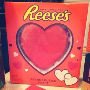I got Nick an assortment of gifts, including this giant Reese’s heart! (Which is now completely eaten, btw!) And he got me a very sweet card and a giant assortment of Russell Stover’s chocolates (which are also now gone!)