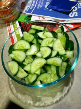While you let the quinoa cool, chop up your tomatoes, cucumber, and onion into small chunks. Once the quinoa is mostly cool, stir in your chopped veggies. Next stir in the Italian dressing, dill weed, and salt & pepper. Your salad may need more or less dressing, so add the liquid slowly until you know how much dressing is right for your mixture. You want it to be fairly ‘dry’; your quinoa should not be dripping with dressing!