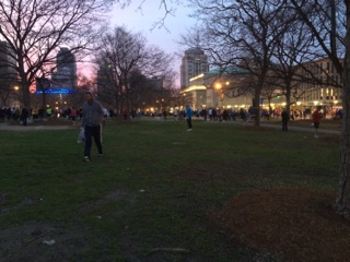 IMG_3781 IMG_3782 IMG_3784Nick stood on the other side of the corral gate so we could stay together and chat while I waited for my wave to start. Standing around in the cold made me have to pee one more time, so I snuck out of the corral, ran to the porta-potties, peed, and snuck back in where Nick was waiting right as the elites and wheelchair athletes were taking off. Whew! Three porta-potty trips before the race seemed like a lot – but it kept me from stopping along the race course. 🙂