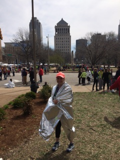 Whew! What a long and fun weekend it was! Overall, I really enjoyed the Go! STL Marathon. It had great support, and it was well organized. It had some extreme elevation climbs with rolling hills that went on for miles and miles (hence the reason I’m limping around today!). But the crowd support was amazing – I’ve never heard so many strangers cheer me on by name before! Having names on our race bibs is such a good idea! I was disappointed that I had to take some walk breaks at the end, but I’m still very happy with my time. My mind and endurance levels were still ready to race through the last 10K. It was my feet that couldn’t take it. I think I just need to invest in some really awesome, thick padded socks to keep my feet as comfy as possible.  All things aside, I still have a new PR by 11 MINUTES! And that is nothing to be upset about!