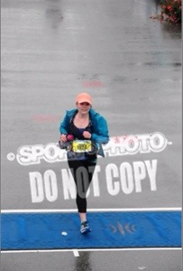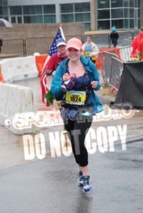 I wanted to cry as I crossed the finish line, but held back the tears long enough to get my medal, get some snacks, and get my photo taken. I immediately bypassed the large finishers area to find Nick and Mac. I didn’t see them right away, so I camped out in a small restaurant with lots of other runners until Nick came to get me. I wanted to soak up the moment of glory, but at the same time I was mentally and physically drained. All I could think about was getting into my dry car and driving back to the hotel for a hot shower.