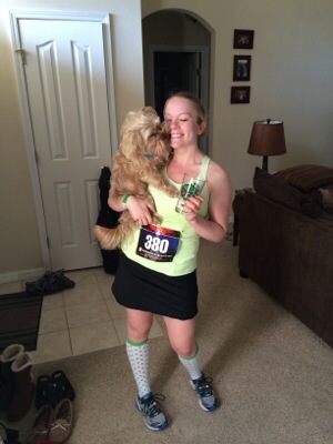 Nick and I headed home for showers and relaxing. I was pretty exhausted after my new PR! Mac watched over me as I put my feet up on the couch.